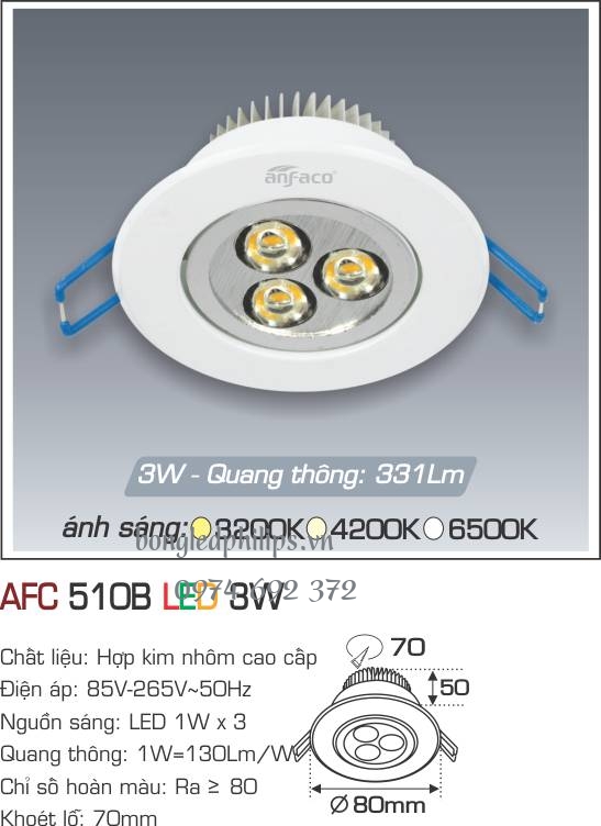 Ứng dụng: Với sự thiết kế sang trọng và độ bền cao, tiết kiệm điện, dễ lắp đặt, đèn Led Anfaco tròn gắn âm trần AFC 510B-3W kiến tạo nên không gian sang trọng là sự lựa chọn hợp lý và hoàn hảo thay thế cho các loại đèn truyền thống thiếu thẩm mỹ, thiếu an toàn, mà lại tiêu hao điện cao khi sử dụng bóng huỳnh quang hay bóng sợ đốt.