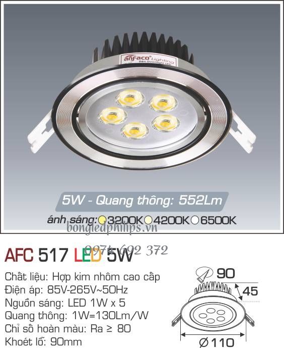 Ứng dụng: Với sự thiết kế sang trọng và độ bền cao, tiết kiệm điện, dễ lắp đặt, đèn Led Anfaco tròn gắn âm trần AFC 517-5W kiến tạo nên không gian sang trọng là sự lựa chọn hợp lý và hoàn hảo thay thế cho các loại đèn truyền thống thiếu thẩm mỹ, thiếu an toàn, mà lại tiêu hao điện cao khi sử dụng bóng huỳnh quang hay bóng sợ đốt.