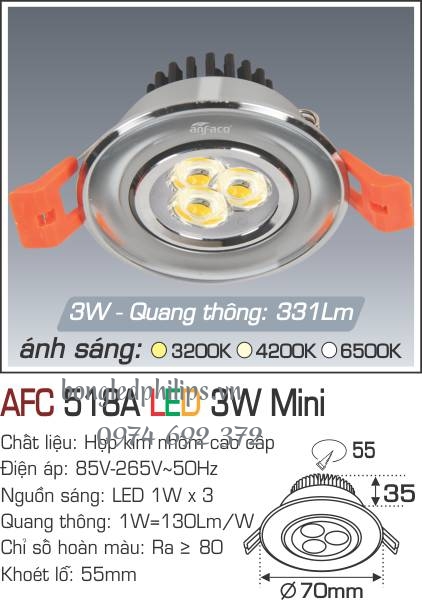 Ứng dụng: Với sự thiết kế sang trọng và độ bền cao, tiết kiệm điện, dễ lắp đặt, đèn Led Anfaco tròn gắn âm trần AFC 518A-3W kiến tạo nên không gian sang trọng là sự lựa chọn hợp lý và hoàn hảo thay thế cho các loại đèn truyền thống thiếu thẩm mỹ, thiếu an toàn, mà lại tiêu hao điện cao khi sử dụng bóng huỳnh quang hay bóng sợ đốt.