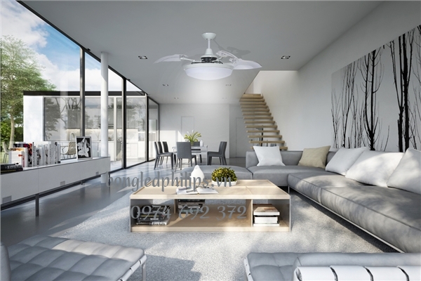 Cánh quạt và bầu quạt màu trắng thích hợp với các không gian với thiết kế hiện đại.